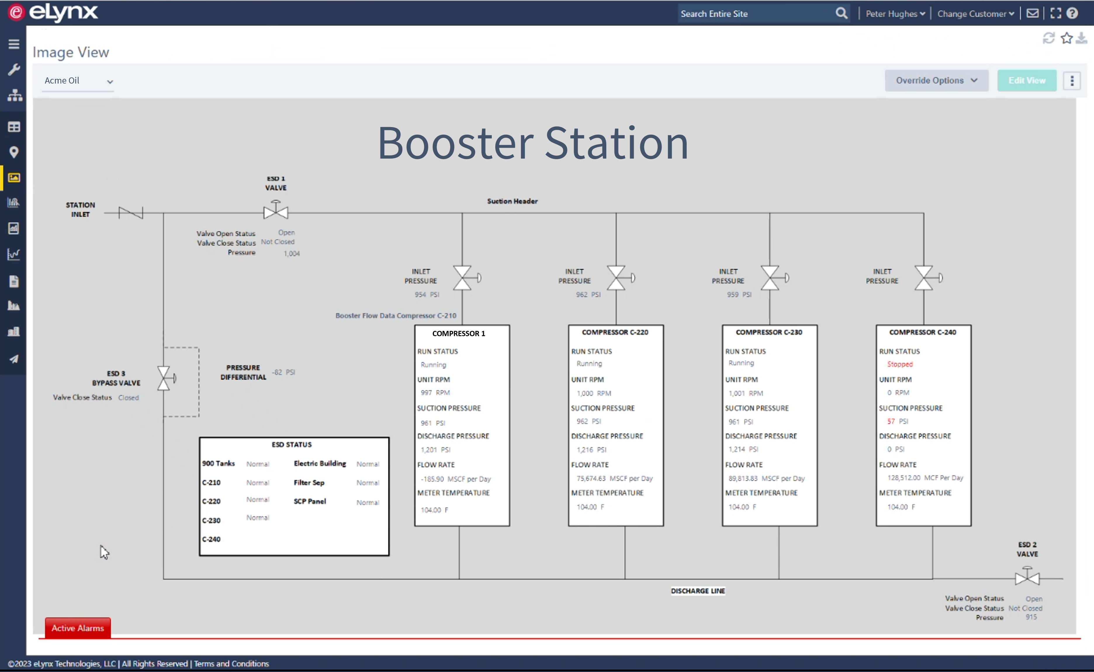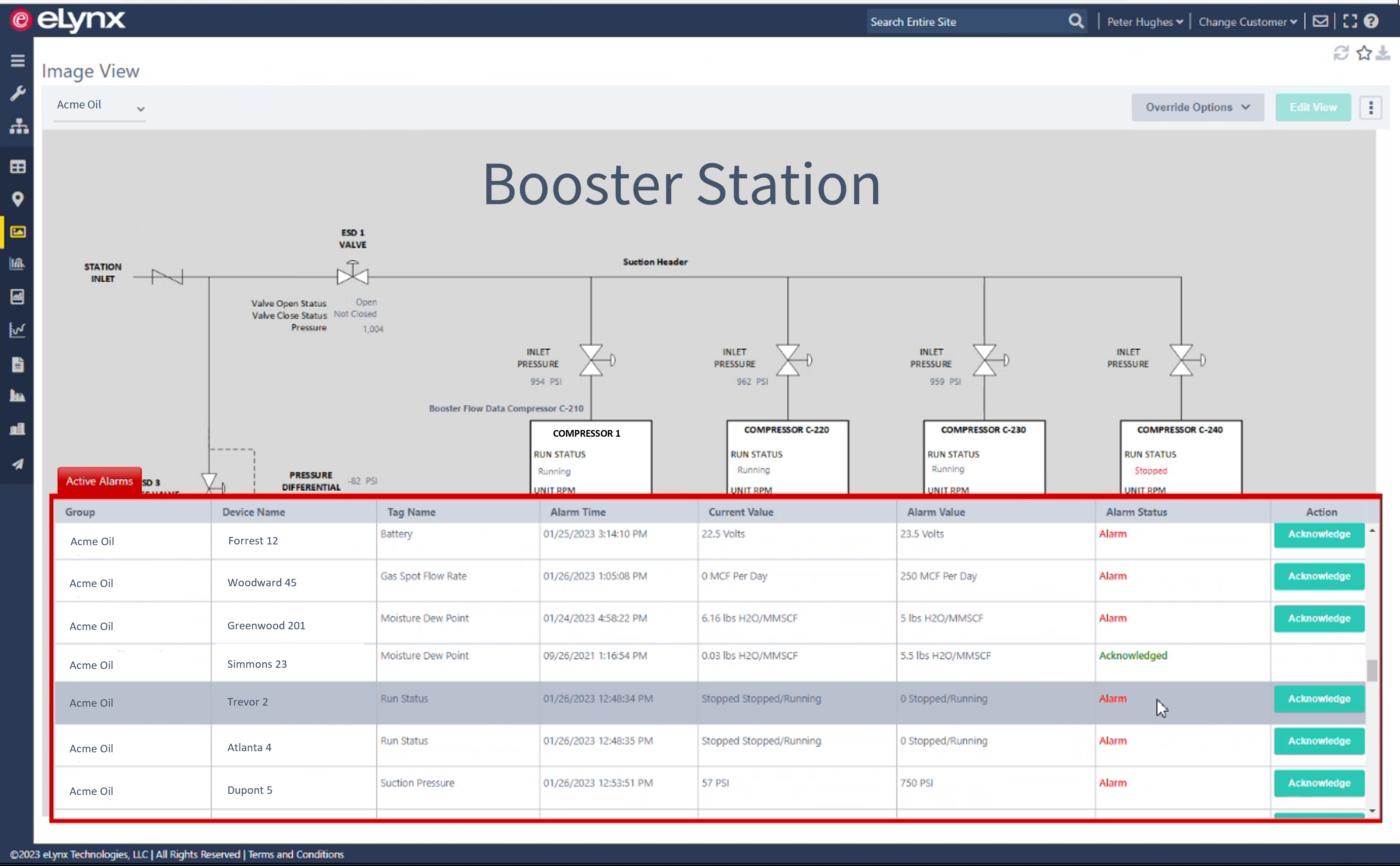 eLynx users can upload custom images, choose objects, and customize everything on the Image View screen to replicate their operations digitally. Image View allows all users to create and customize their own screens with support for demand scan requests, editing capabilities, and interactive alarm banners at either a group or device level. Add graphical context to help analyze operational issues.