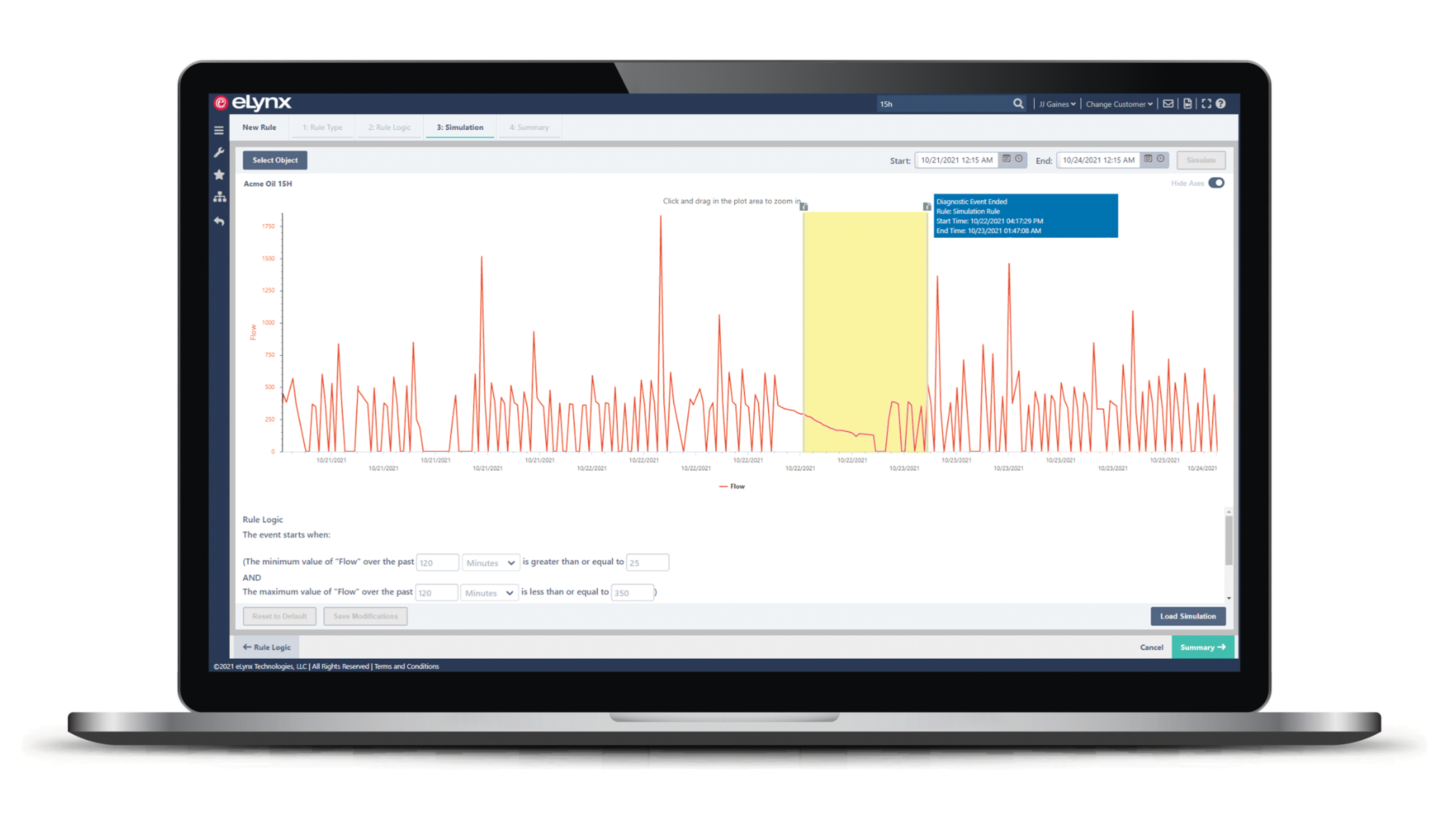 The eLynx Rules Engine allows operators to utilize multivariate alarms. The Rules Engine creates events, reduces alarm fatigue and improves diagnostics.
